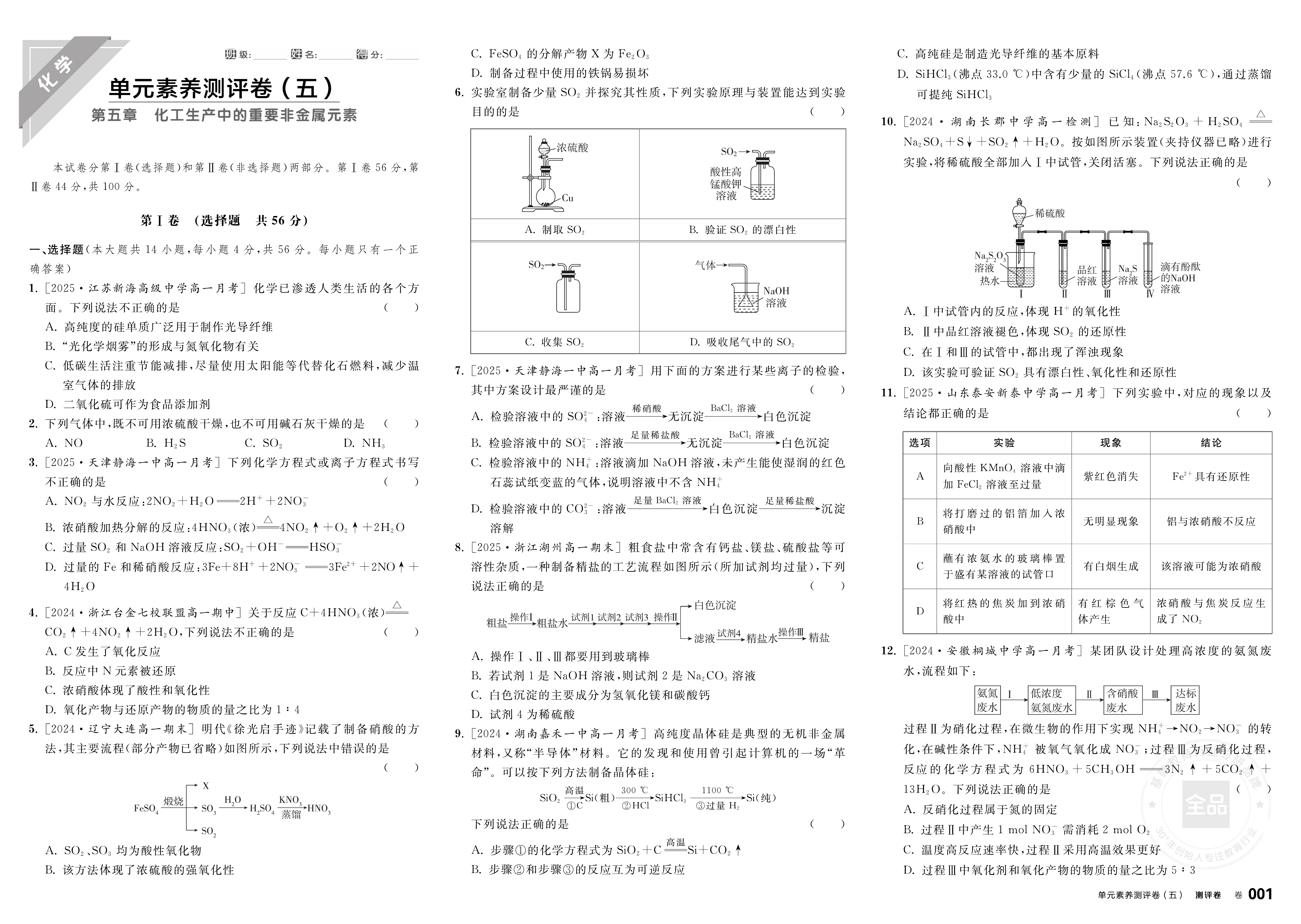 2025-2026《全品学练考》高中化学 必修第二册 RJ【基础版】★